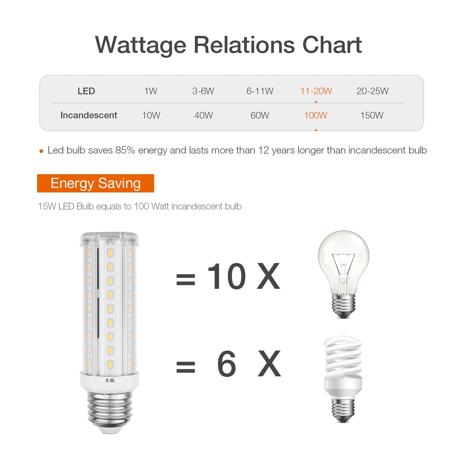 Experience enhanced brightness and visual comfort with the High Brightness 15W Corn Light Bulb. Designed to provide excellent lighting performance, this bulb is perfect for various indoor spaces.Featuring high brightness, this 15W corn light bulb offers ample illumination for any room, ensuring a well-lit environment. Whether it's your living room, bedroom, kitchen, or office, this bulb will deliver bright and vibrant lighting.Not only does this corn light bulb deliver outstanding brightness, but it also helps you save on energy costs. With its energy-efficient design, it consumes less power while still providing the same level of brightness as traditional bulbs. This means you can enjoy bright and efficient lighting without worrying about high electricity bills.